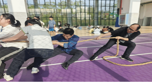 拔河比赛作为开赛项目,直接将现场气氛推向高潮。各班级代表队师生混合组队,双方队员紧握长绳、脚蹬地面,在裁判的哨声中全力以赴。场边的师生们组成啦啦队,呐喊声、加油声此起彼伏,回荡在操场的每个角落。参赛队员们咬紧牙关、齐心协力,用汗水诠释着团结与拼搏的力量,充分展现了外院师生的凝聚力与不服输的精神。